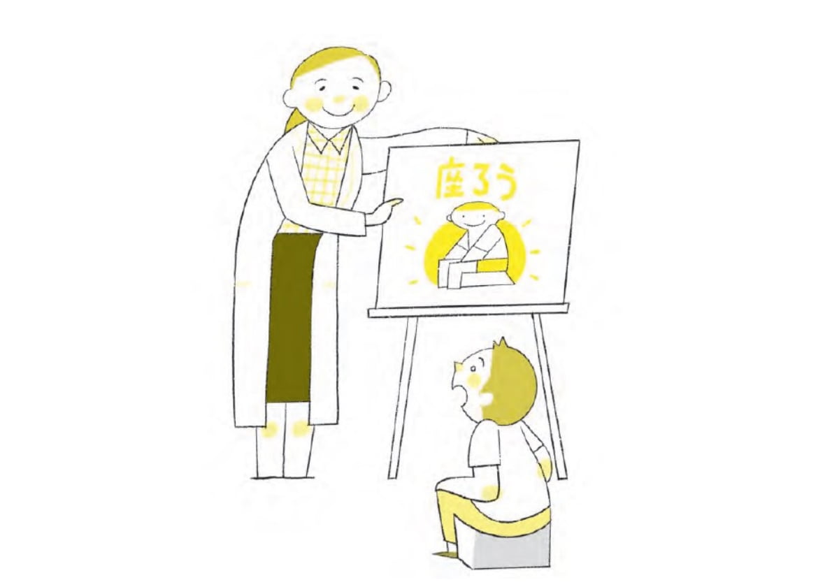 たとえば、座っている子どもの絵と「すわる」と書いた紙をあらかじめ用意しておき、まずはそれを見せて座らせます。それから、目の前で文字や簡単な絵を描いて見せながら話をすると、少しは集中力が続くようになるはずです。
