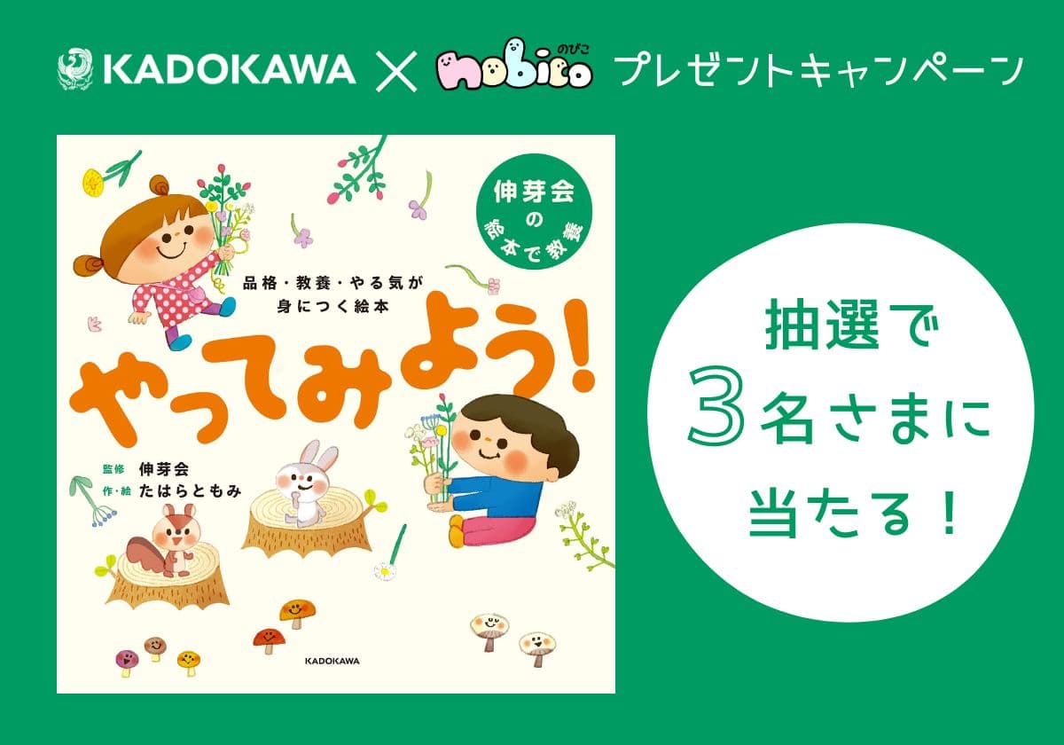 『品格・教養・やる気が身につく絵本 やってみよう!』(監修:伸芽会/作・絵:たはらともみ/KADOKAWA)を抽選で3名様にプレゼントいたします。ぜひご応募下さい。(締切:2024年2月22日)