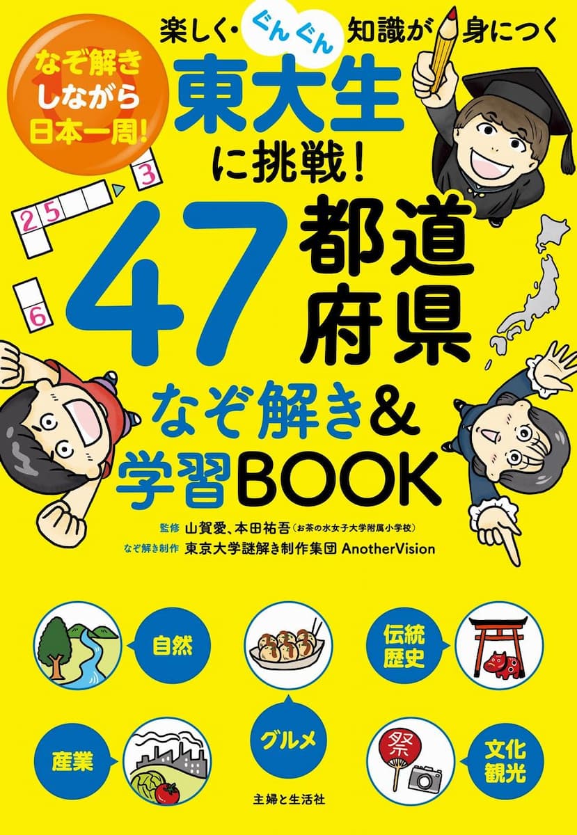 楽しいなぞ解きとマンガで地理の知識を身につけられる書籍『東大生に挑戦!47都道府県なぞ解き&学習BOOK』。主婦と生活社から発売されたこの本は、東京大学の学生団体「AnotherVision」が制作したクイズを50問以上収録。お茶の水女子大学附属小学校の現役教員である山賀愛先生と本田祐吾先生が監修を務めています。