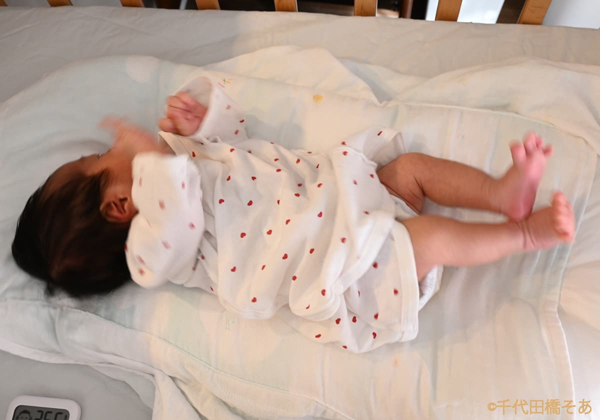寝ているといっても「眠っている」わけではありません。寝転びながら絶叫です。小さい手足をジタバタしながらとにかく大声を出して絶叫します。