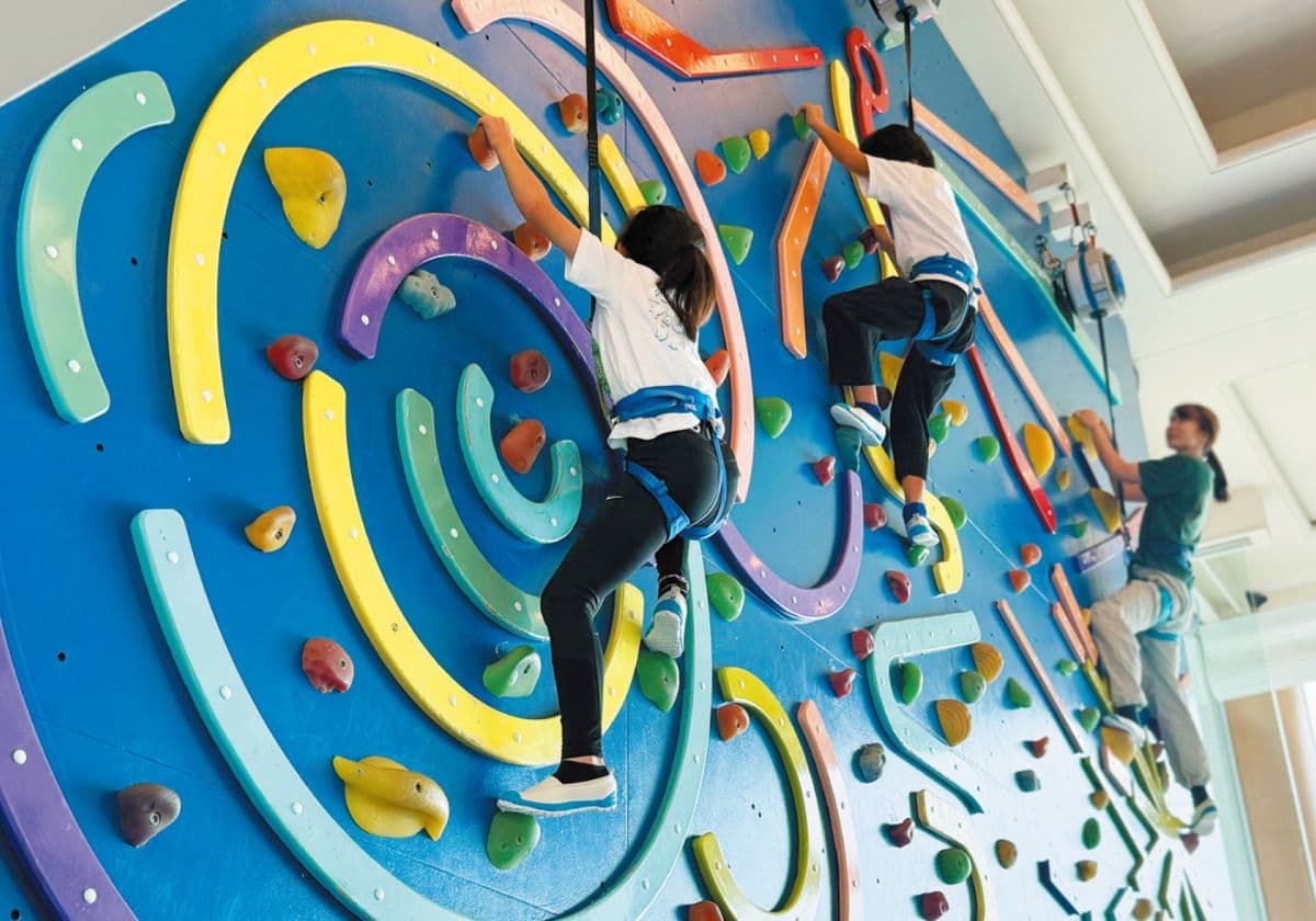 チェックインカウンターは混み合うことも多いので、大人ひとりがチェックインしている間、子どもは別の場所で遊ばせておくのがベター。海を眺めながらボールプールで遊べるキッズルームや巨大なクライミングウォールなら待ち時間が長くても飽きずに楽しめます。